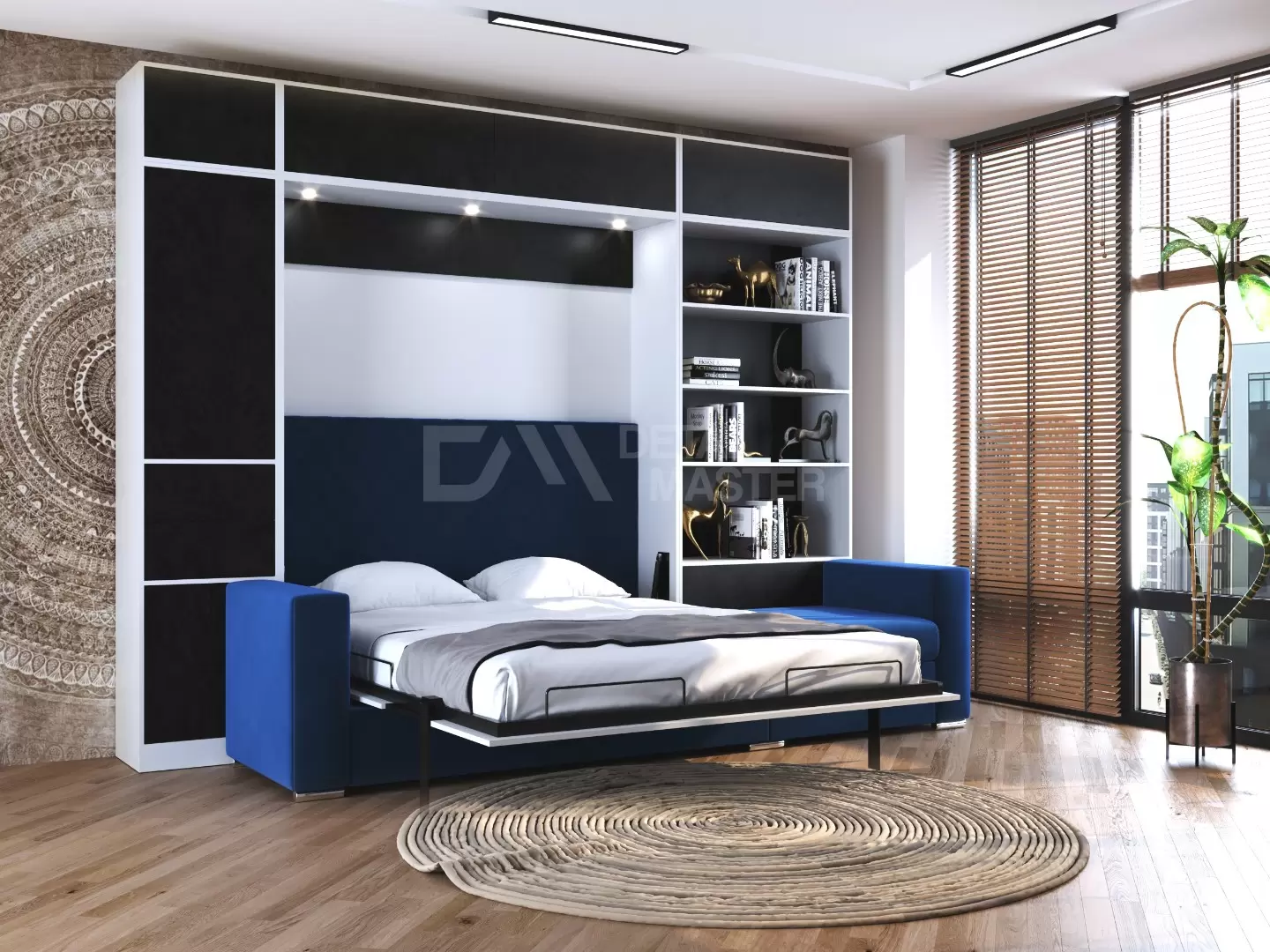 Шкаф-кровать трансформер с диваном "Urban Family Balance" работает на механизме раскладывания собственной разработки "Balance". Кровать раскладывается легким движением руки, превращаясь в полноценное спальное место. Просто потяните за ножку-маятник, которая самостоятельно фиксируется в нужное положение при опускании.